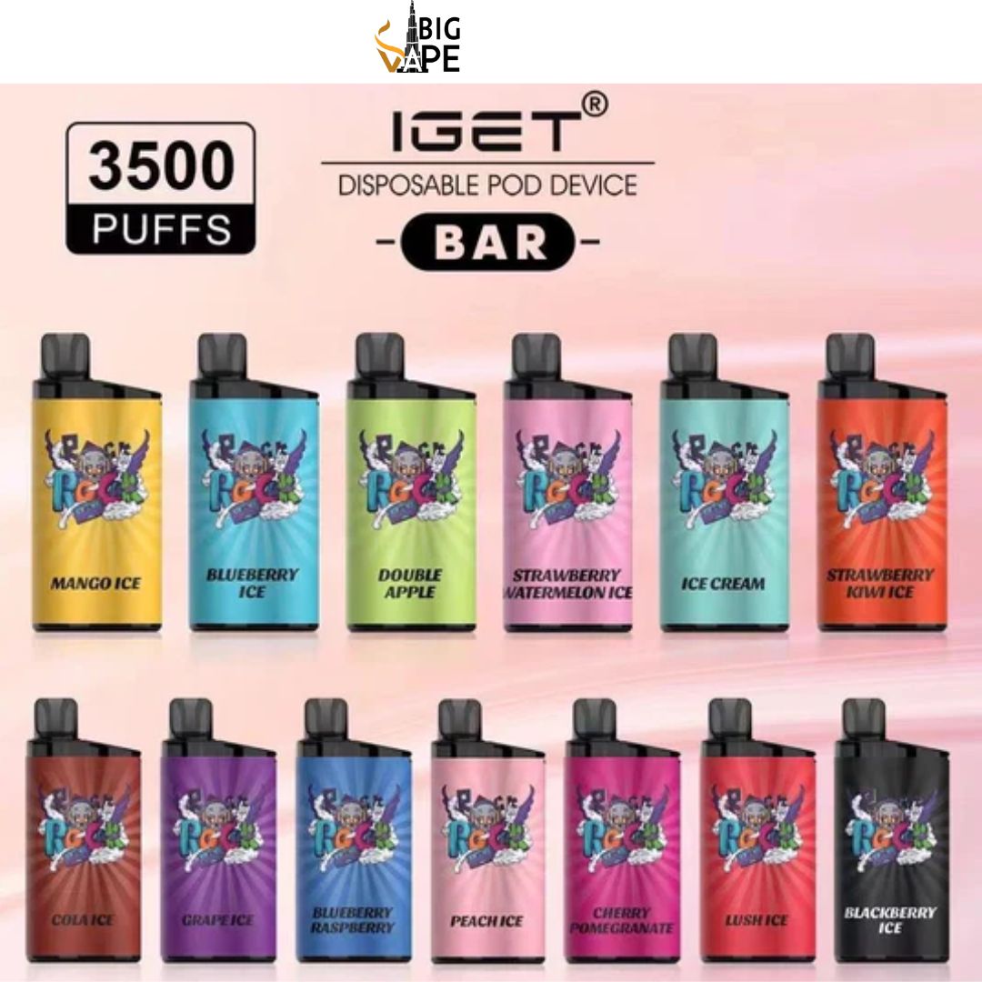 IGET Bar 3500 Puffs Disposable Vape is a compact, stylish, and reliable vaping device designed for users who value flavor, convenience, and performance. With its pre-filled e-liquid and long-lasting battery, it delivers a smooth and satisfying experience without the need for refills, charging cables, or maintenance. Perfect for on-the-go use, the IGET Bar combines portability with bold flavor options to ensure a premium vaping session every time.