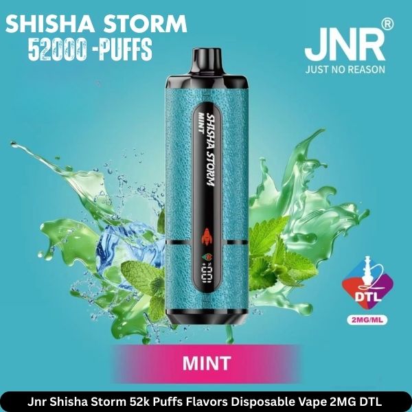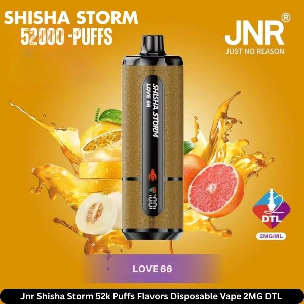 The JNR Shisha Storm 52000 is engineered for vapers who hate the “low battery” or “empty tank” anxiety. With a staggering puff count and a robust dual-mesh coil system, it’s built to provide a consistent DTL (Direct-to-Lung) experience. It features an integrated smart display and a high-capacity reservoir, making it one of the largest disposable options currently available in 2026.